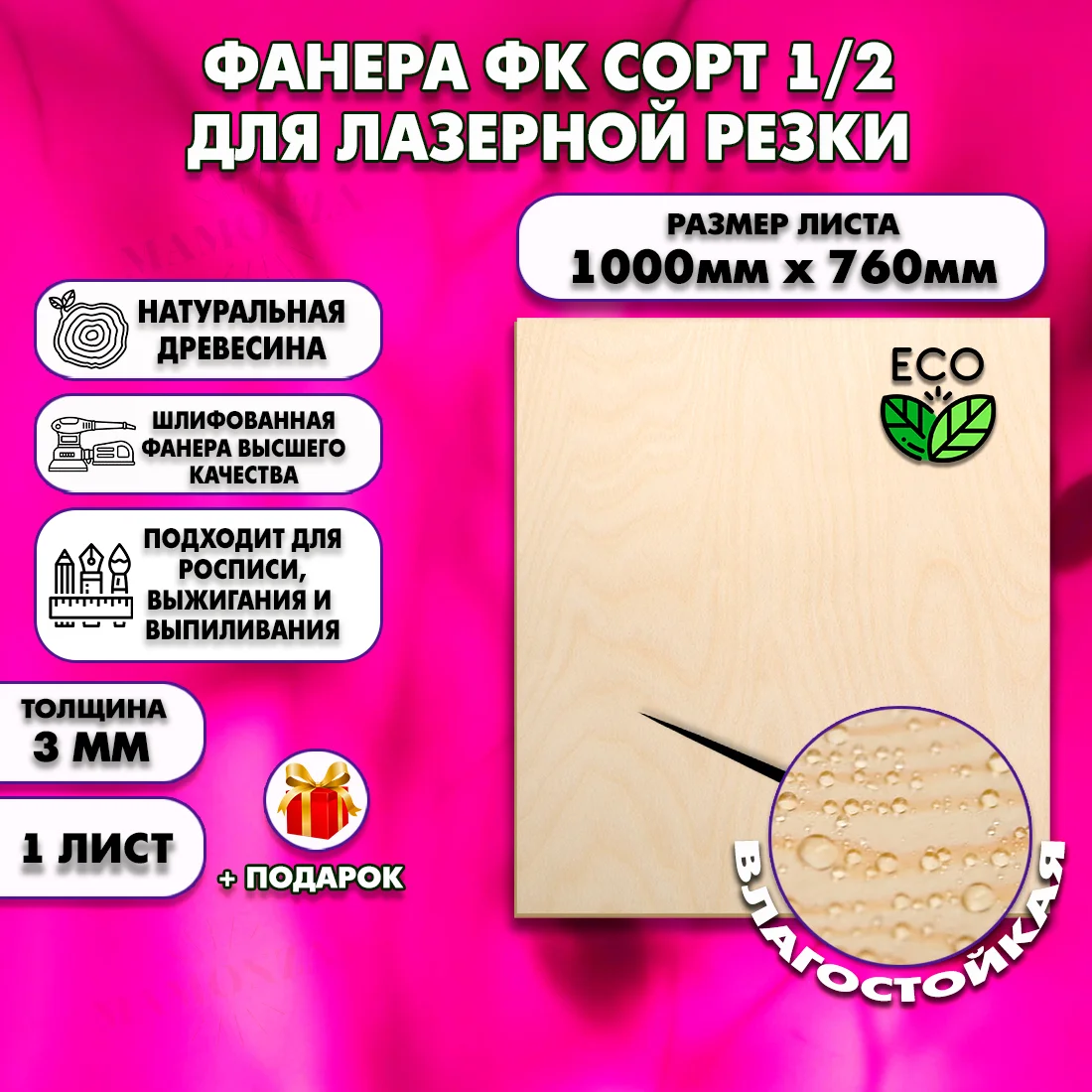 Совет эксперта: Фанера 3 мм режется канцелярским ножом — идеальна для лазерной резки и моделирования. Скорость реза на CO₂-лазере 40 Вт: ~1200 мм/мин.