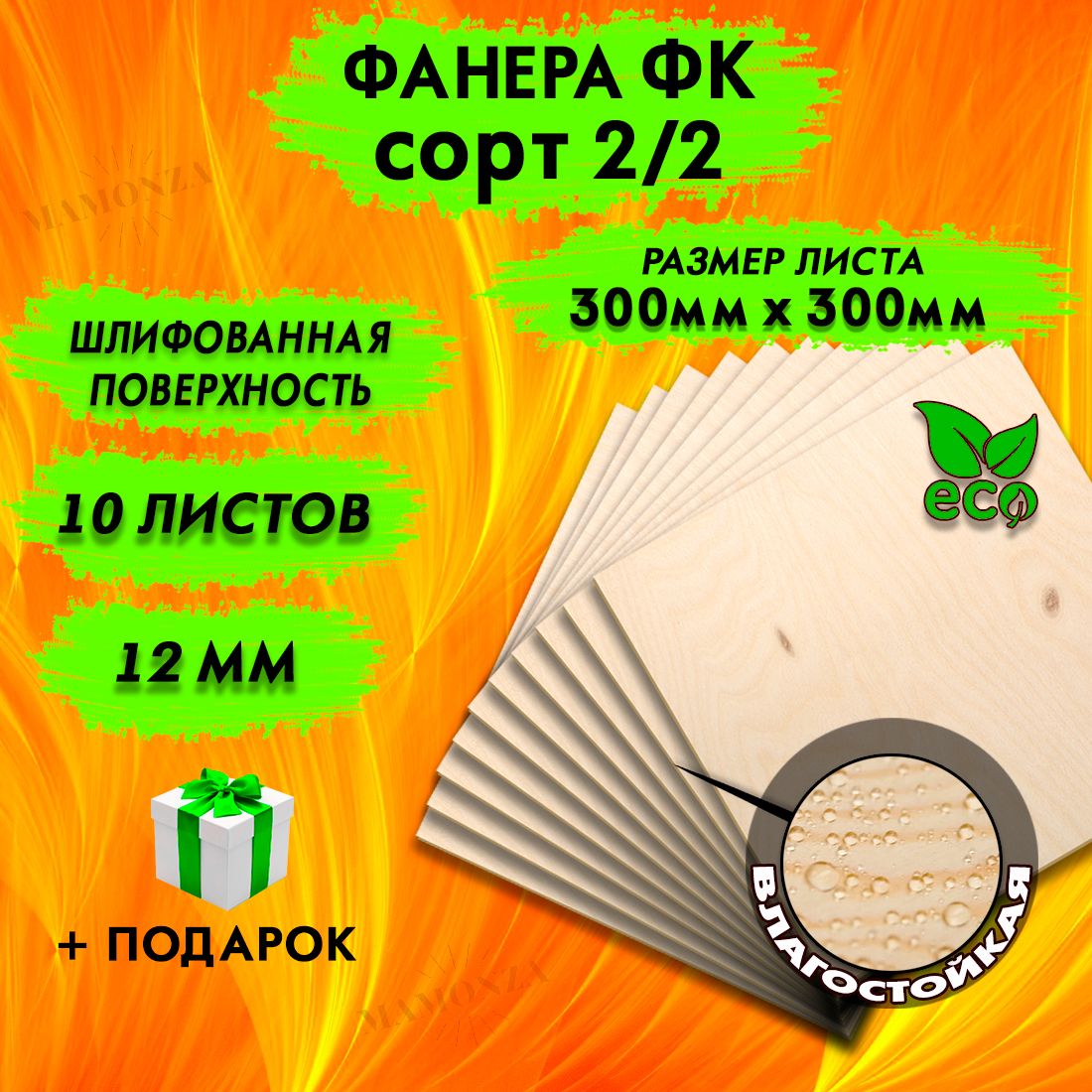 Фанера ФК | Сорт 2/2 | Размер 300×300 миллиметров 10 листов — купить по лучшей цене на Raspilim.com!