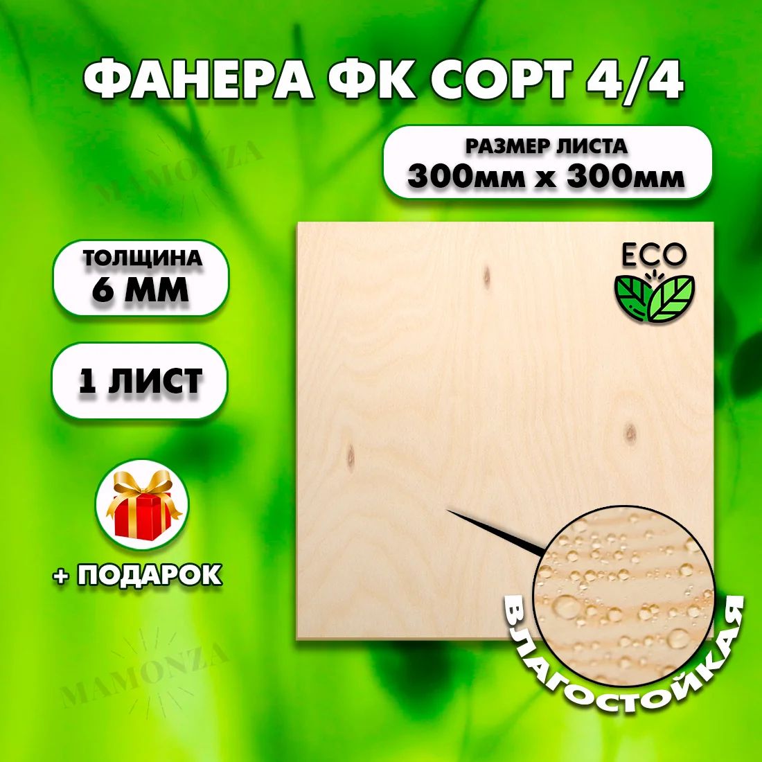 Характеристики фанеры ФК сорт 4/4 — 6 мм (300×300)