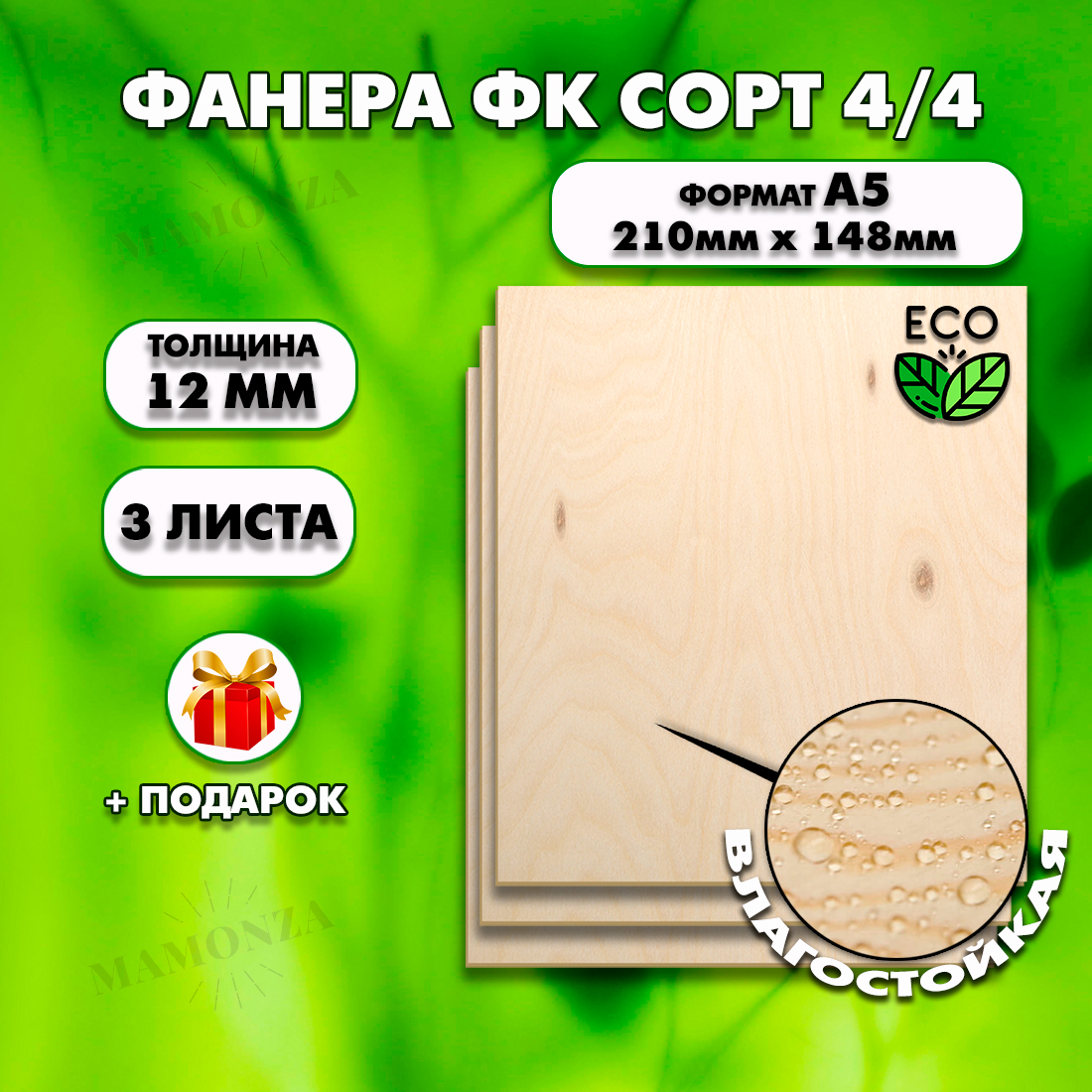 Фанера для уроков труда, 12мм А5 (148х210), 3 штуки, сорт 4/4 — это высококачественный и надежный материал, который подойдет для множества строительных и ремонтных работ. Идеально подходит для фанера для уроков труда, 12мм а5 (148х210), 3 штуки, сорт 4/4. — надёжный материал с размерами А5 | 148×210 миллиметров и толщиной 12 миллиметров. Используется в строительстве, производстве мебели и декоре.