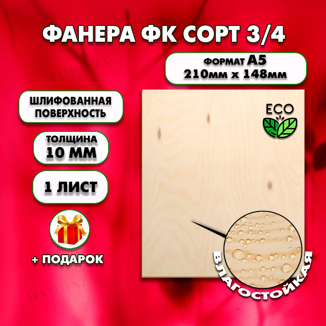 Фанера ФК 3/4 толщиной 10 мм — экономичное решение для строительства. Лист 148×210 мм (0,03 м²) подходит для открытки, панно, заготовки для выжигания. Клей ФК, класс E1 — безопасна даже в жилых помещениях, хотя чаще используется для скрытых конструкций.